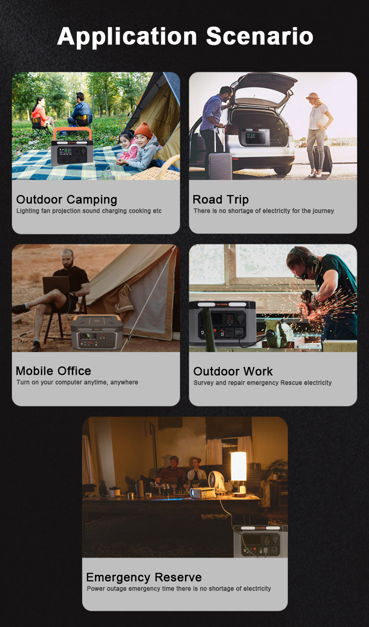 Saída de energia: O gerador solar fornece saídas de energia CA e CC.A saída CA normalmente tem uma tensão de 110 V, que é compatível com eletrodomésticos e eletrônicos padrão.A saída DC pode variar e pode incluir portas USB, portas DC ou até tomadas de isqueiro de carro, permitindo carregar e alimentar dispositivos como smartphones, tablets, laptops, luzes, ventiladores, pequenos eletrodomésticos e muito mais.